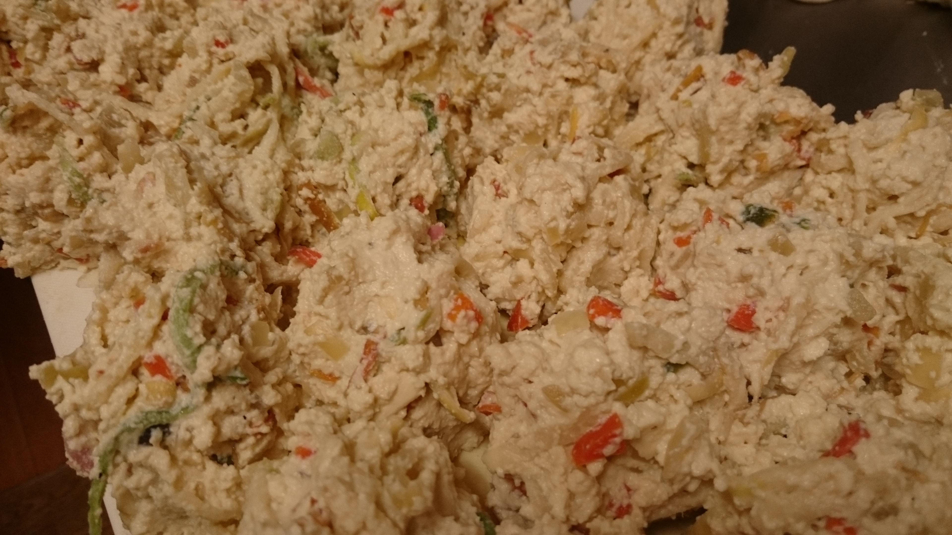 そこに、炒めたみじん切りの玉ねぎ、人参を入れて