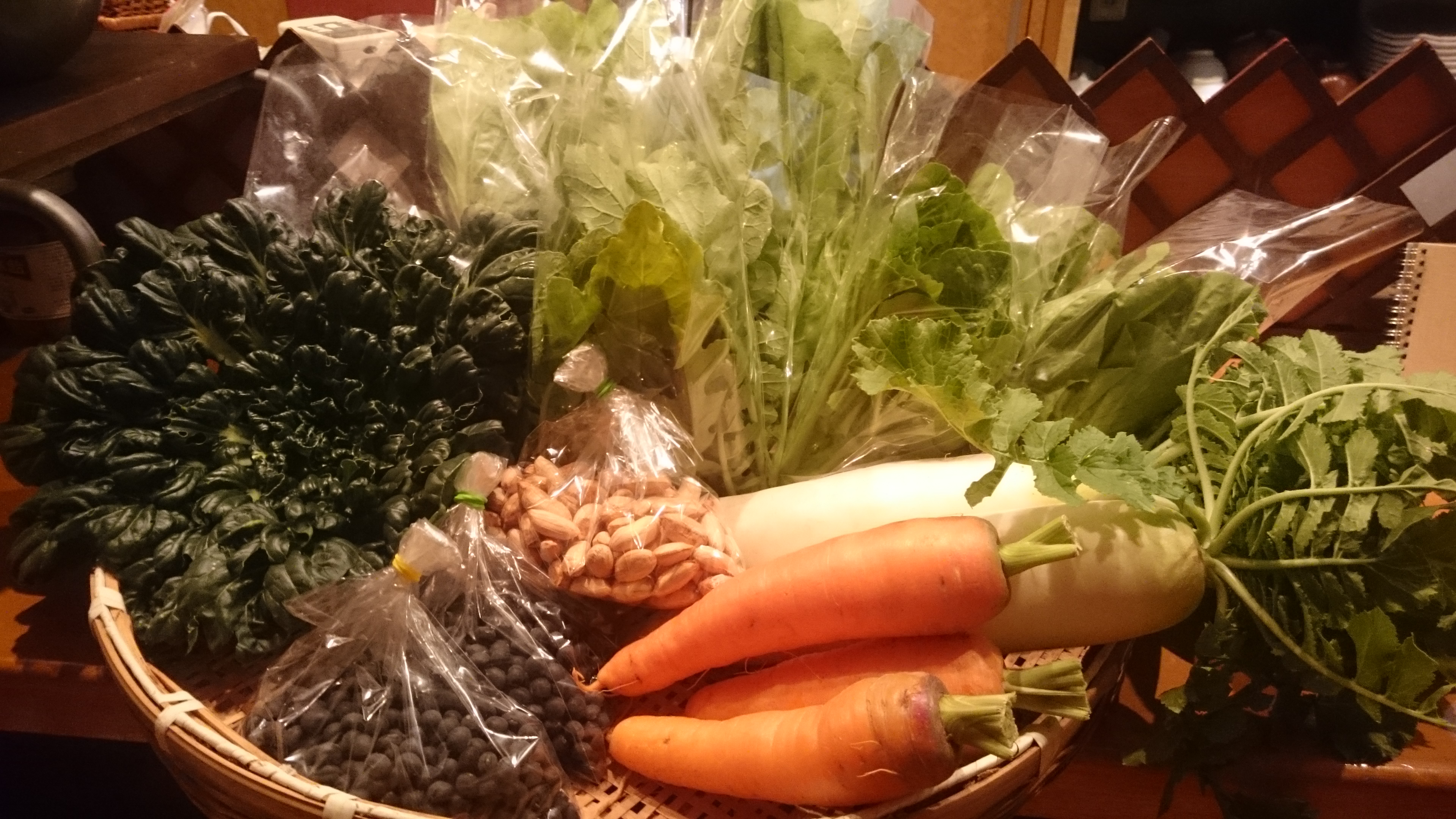 人参、大根、大根菜、山東菜、黒豆