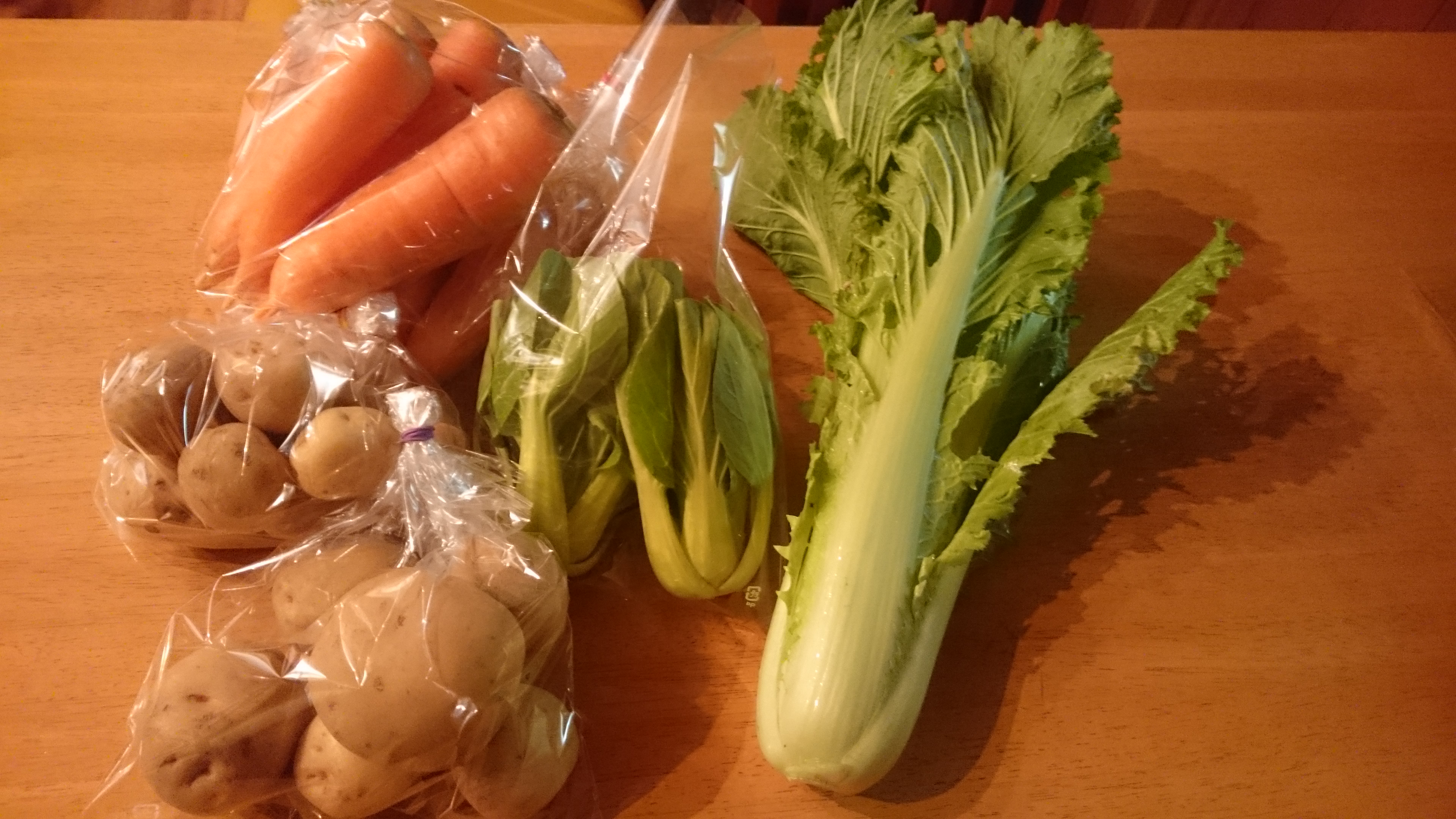 人参、じゃが芋、チンゲン菜、竹の子白菜