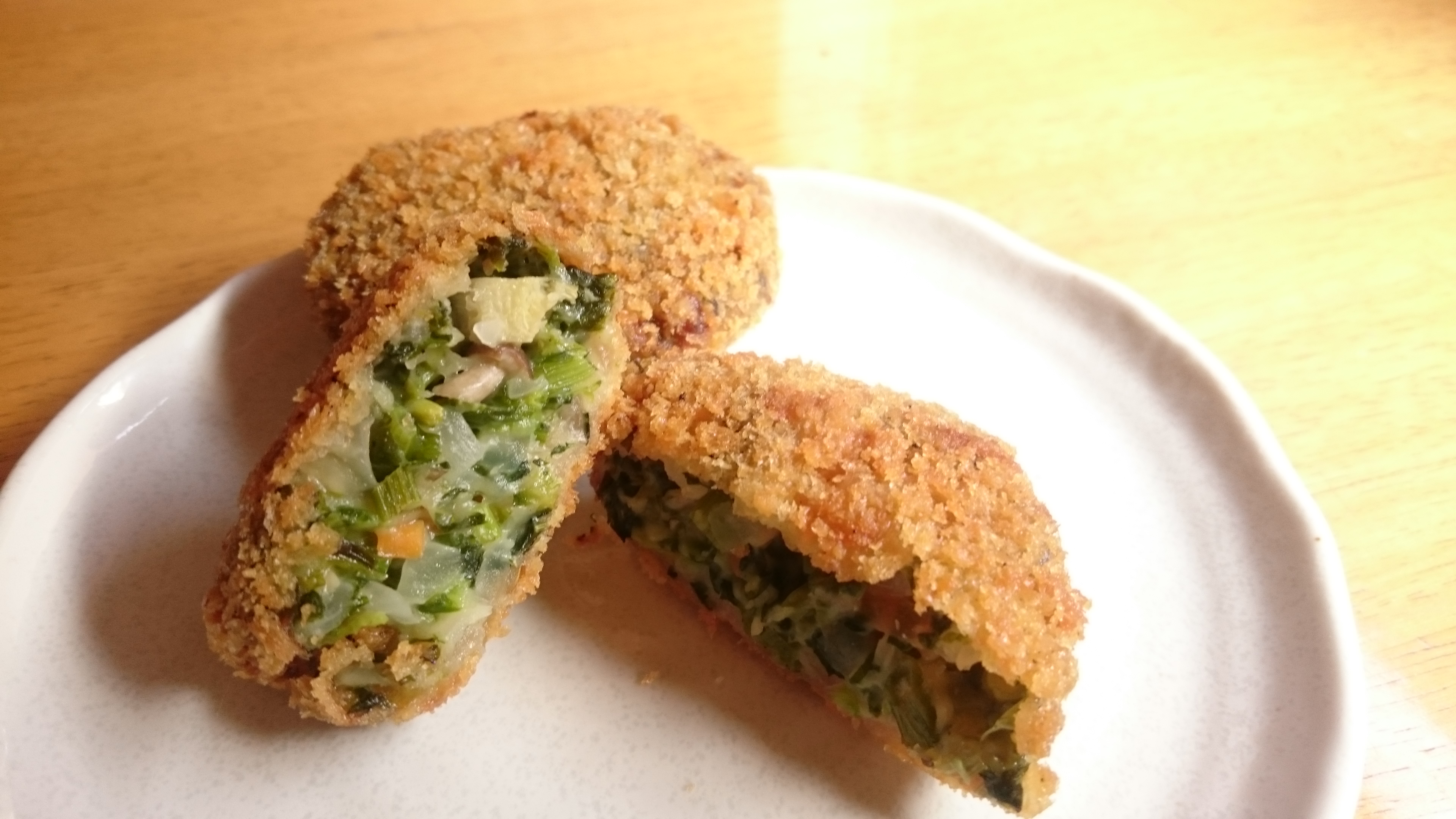 茹でて刻んだ菜の花を混ぜてから硬さを調節すれば、