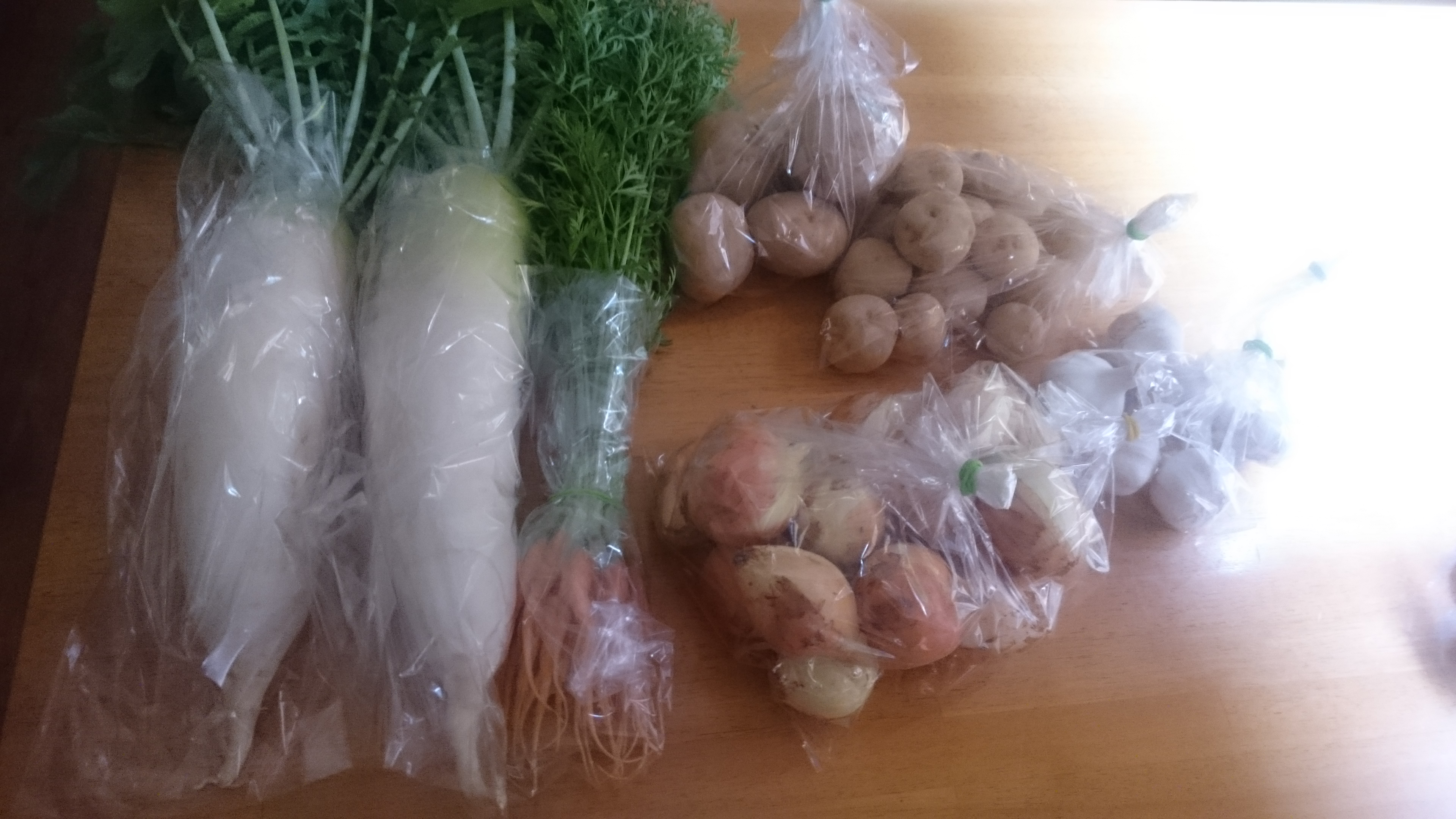 大根、間引き人参、玉ねぎ、じゃが芋、にんにく