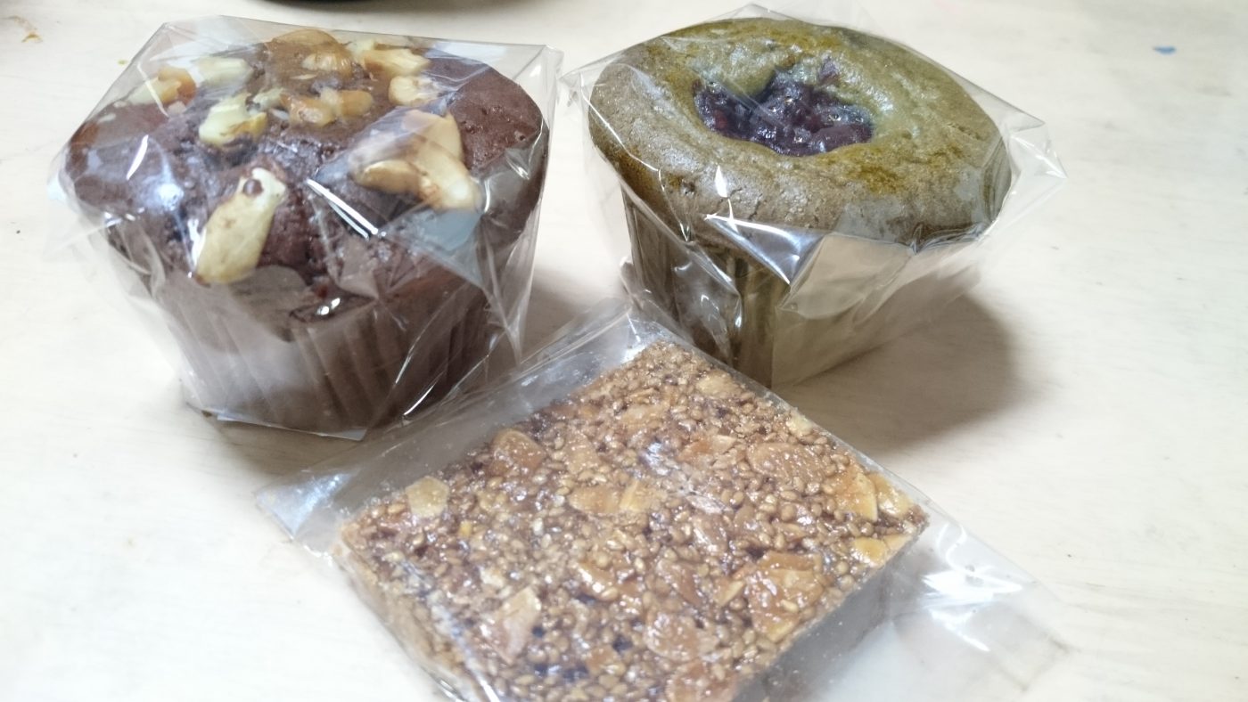チョコマフィンと、抹茶小豆マフィン、ゴマのフロランタン
