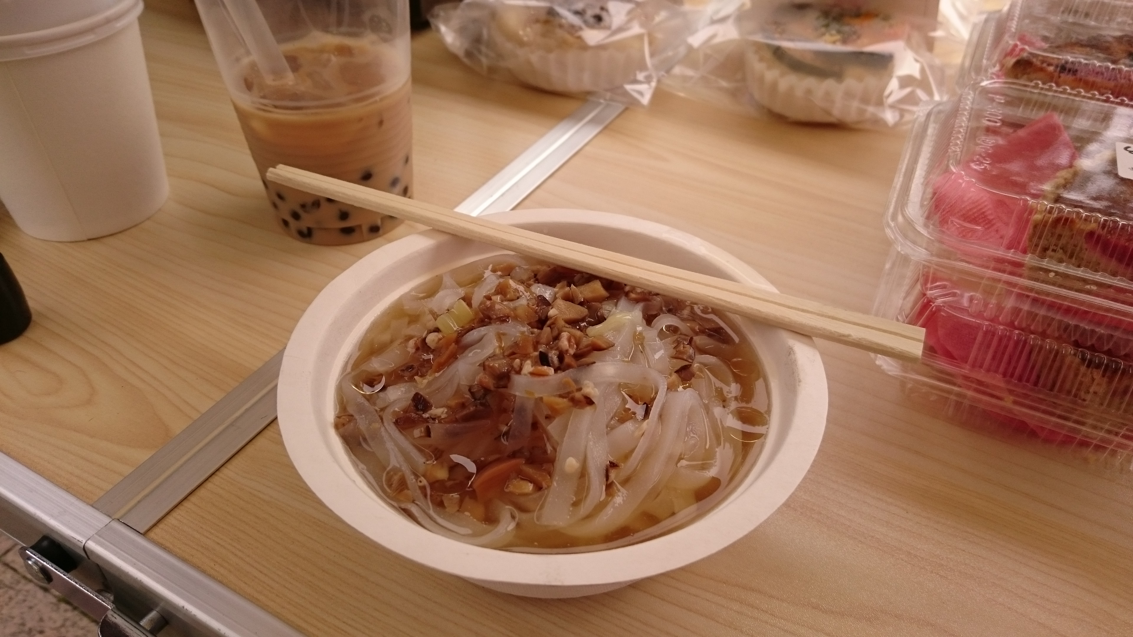 私自身も、お隣さんのタピオカチャイやフォーをいただきながら